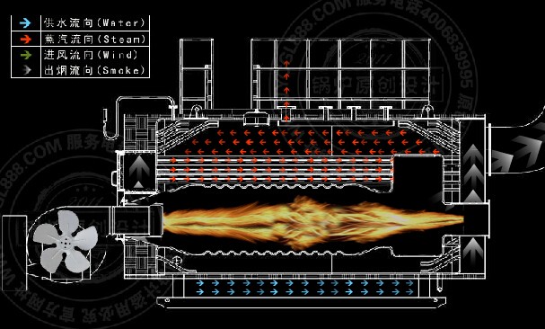 1、鍋爐采用三回程臥式濕背式結(jié)構(gòu),扳邊對(duì)接焊縫,提高了鍋爐可靠性。