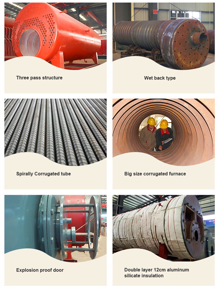 1.**臥式爐采用大爐膽,高輻射面,中心回燃,燃燒空氣充分,受熱面積利用率高。應(yīng)用煙管內(nèi)增設(shè)攏流片技術(shù),不僅擴展傳熱面,而且其對煙塵的"自潔”功能可有效降低熱阻,提高導(dǎo)熱效果。立式爐為燃燒器下置式煙火管鍋爐燃料霧化后在平直爐膽內(nèi)微正壓燃燒。采用高級離心玻璃棉多層保溫,熱損失降低至*低。